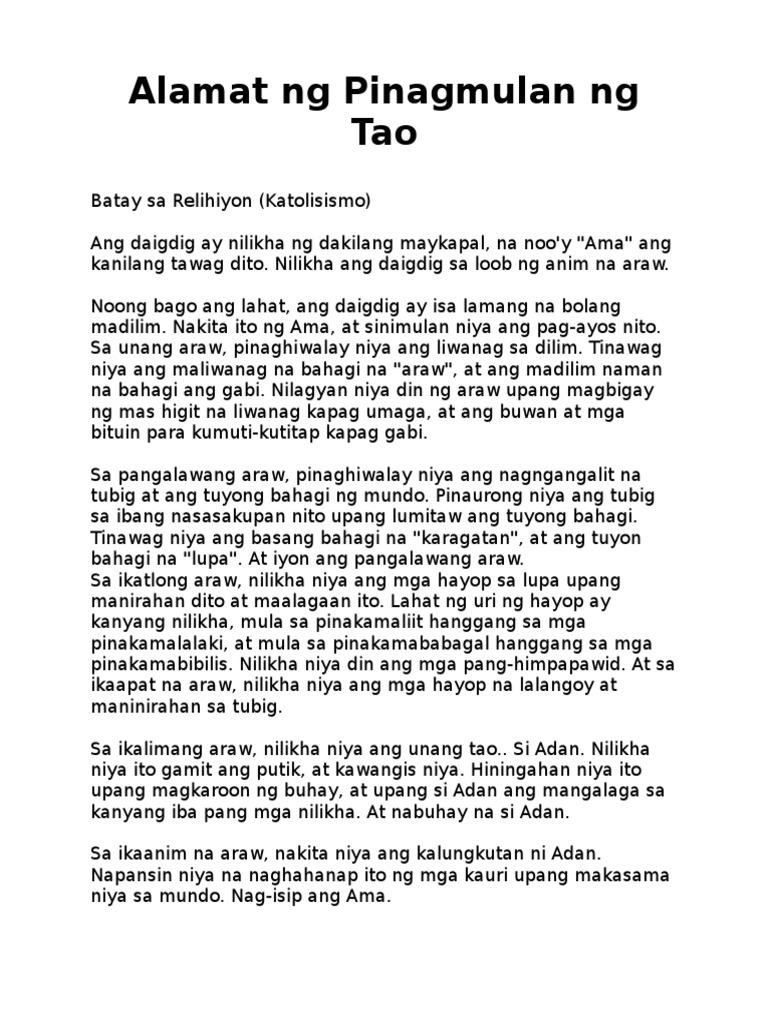 Alamat Kung Saan Nag Mula Ang Tao Pdf